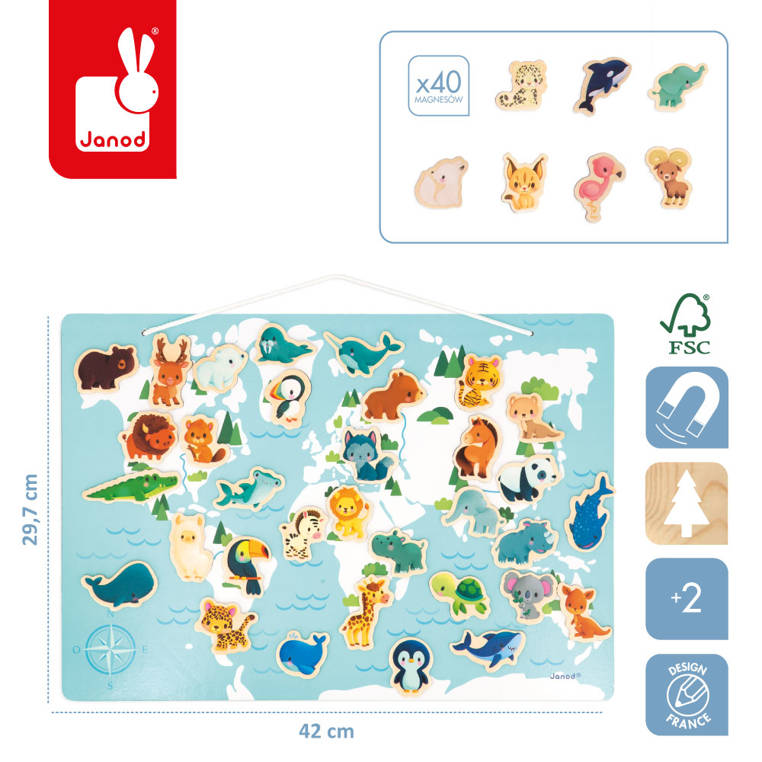 Mapa svijeta Janod 42×0,95×29,7cm +2 zivotinje art.J05468